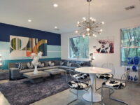 Много ефективен, но рисков начин. Контрастната комбинация от двойни тапети в залата е деликатна материя и изисква познаване на поне банална допълнителна комбинационна технология. Например синият и жълтият тапет е добър вариант, червеният и зеленият също.