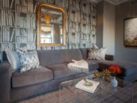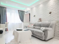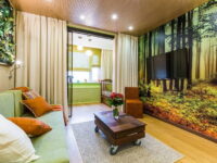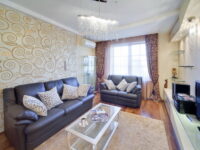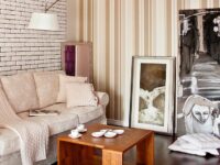 - Подреждане на мебели.Ако тапетът е спътник в интериора с текстура, а основните са обикновени, е забранено да се блокира първата с мебели. Тази акцентна грешка е много често срещана, когато декоративна стена по някаква причина е покрита със стена с пързалка или слушалки.