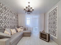 - Винаги трябва да започнете от площада. Въпреки че тъмно сивото е на мода сега, то е противопоказано в малки стаи! Мрачните нюанси само намаляват площта на стаята, така че само малки тапети са подходящи в малки дневни. В големите зали, напротив - тонът трябва да е тъмен. В противен случай стаята ще изглежда неудобна.