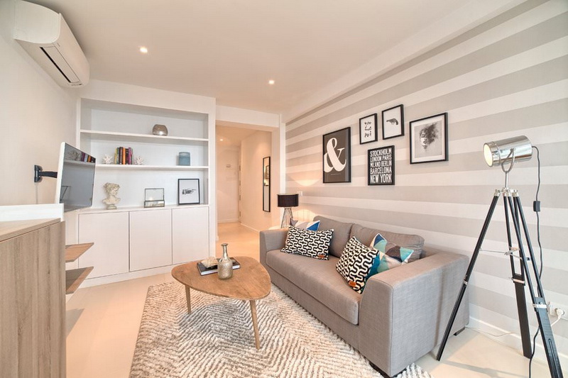 - Хоризонтално и вертикално. Ако имате късмет с височината на таваните, тогава не трябва да правите вертикален чертеж. Това ще направи стаята да изглежда още по-висока, което не е много добре. Правилната геометрия, както физическа, така и визуална, сега е на мода. Хоризонталните ивици само правят стаята да изглежда по-дълга.