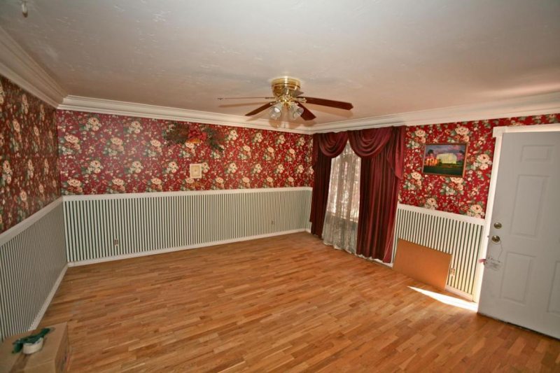 Можете да видите снимка на комбинация от тапети от два цвята в хола отдолу.