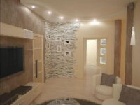 - Обемни текстури. Подобно на предишното правило. Техният триизмерен ефект ще започне да се смазва веднага и малката стая ще изглежда микроскопична. Ще бъде неудобно да живееш в него. В големи стаи няма такъв проблем.