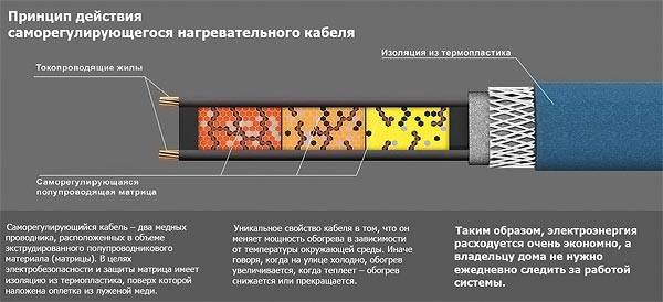 من السمات المهمة لهذا السلك قدرته على التنظيم الذاتي. يتجلى ذلك بوضوح في الحالة التالية. عندما يتم وضع نظام إمداد بالمياه ، يمكن أن يمر جزء منه فوق سطح الأرض ، وجزءًا فوق منطقة متجمدة من التربة ، وجزءًا تحته. ولكن من أجل استبعاد التجميد ، من الأفضل تركيب الكابل الكهربائي بطوله بالكامل ، لكن درجة حرارة الأنبوب الذي يتفاعل معه الكابل ستكون مختلفة. هنا يأتي دور التنظيم الذاتي - سيحدد الجهاز نفسه درجة الحرارة المطلوبة للحالة المثلى وهذه هي ميزته المهمة.