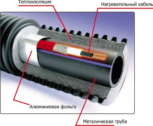 - بالتوازي مع الأنبوب. قد تكون هناك اختلافات ؛ في حالة التجميد الشديد ، يُنصح بوضع 2 أو أكثر من الكابلات ، والتي يجب وضعها بالتوازي.