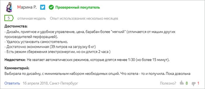 نظير النموذج السابق مقابل 25500 روبل. تشمل الميزات الرئيسية للجهاز غسيل الفقاعات ، والتحكم الإلكتروني الذكي ، ومجموعة من الحماية ضد المشاكل الأساسية - التسريبات ، والأطفال ، وعدم التوازن والرغوة. تتوفر 8 برامج غسيل. كل منهم نموذجي لمجموعة كاملة من النماذج المماثلة - حساسة ، اقتصادية ، سريعة ، أولية وغيرها.