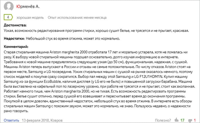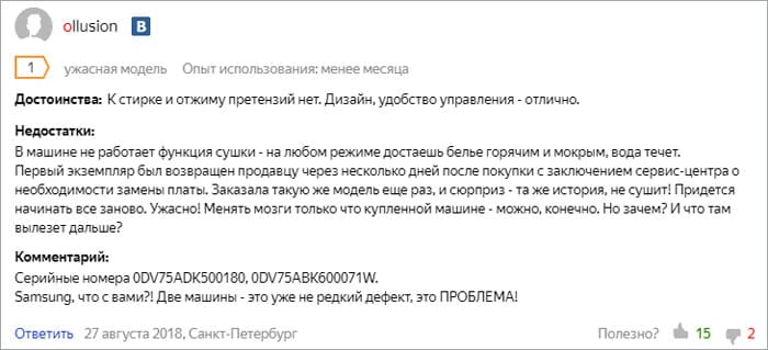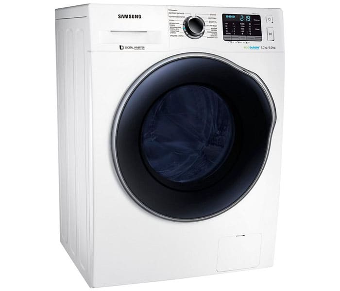 يمكنك شراء غسالة سامسونج مقابل 40000 روبل. هذا نموذج مع تحميل أمامي تقليدي و "سعة تحميل" تصل إلى 7 كجم. يمكن أن يعمل التجفيف حتى 5 كجم فقط وهي تعرف كيفية القيام بذلك في برنامجين مختلفين. يوجد شاشة رقمية لعرض المعلومات. الإدارة ذكية أيضًا. الغسل والدوران لهما فئة طاقة من النوع أ. عند الدوران ، يمكنك تحديد سرعة يمكن أن يصل الحد الأقصى إلى 1400 دورة في الدقيقة. للغسيل ، يوجد 14 برنامجًا منفذة ، بما في ذلك برنامج دقيق واقتصادي وسريع وبرنامج لإزالة البقع.