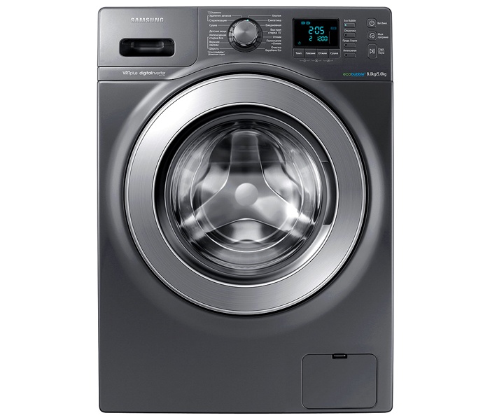 نموذج آخر "كبير" من غسالة سامسونج مقابل 60.000 روبل. التحميل والغسيل والتجفيف مثير للإعجاب للغاية - 8 كجم للأولى و 6 كجم للثانية. يحتوي التجفيف على ثلاثة برامج مختلفة يمكن تنشيطها بمرور الوقت. يوجد 14 برنامجًا للغسيل ، من بينها يمكن تمييز الفقاعات ، والحساسية ، والاقتصاد ، والغسيل السريع والنقع. تشمل الميزات الإضافية الطلاء المضاد للبكتيريا وتكنولوجيا AirWash والأسطوانة الماسية وتنظيف الأسطوانة Eco