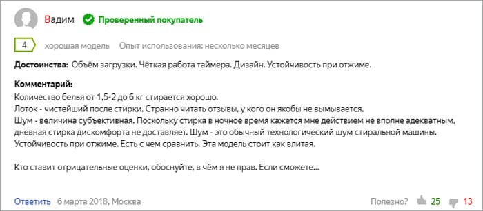 آلة قائمة بذاتها لـ 19000 روبل وحمل أقصى 6 كجم. النموذج مضغوط - يبلغ عمقه 45 سم فقط ، وبالتالي ، يشغل مساحة أقل من الطراز بالحجم الكامل. ومع ذلك ، فإن أدوات التحكم إلكترونية ، وهناك شاشة رقمية و 8 برامج غسيل. البرامج بسيطة للغاية - الغسيل السريع والشطف وملابس الأطفال ووضع إزالة البقع. يمكن تسريع الدوران إلى 1000 دورة في الدقيقة ، ويمكن تعديل سرعته.