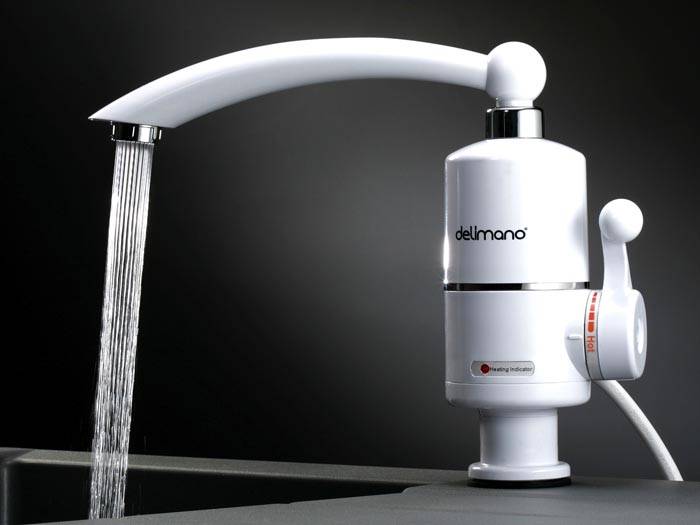 Основните предимства на поточните нагреватели се считат за липсата на ограничения за количеството топла вода и компактните размери на устройството. Може просто да прилича на чешмяна глава. Основният аргумент на противниците на такива системи е, че за свързване на устройството е необходимо отделно окабеляване с мощен кабел. Но ако говорим за устройство с ниска мощност, до два киловата, е напълно възможно да се използва обикновен контакт.