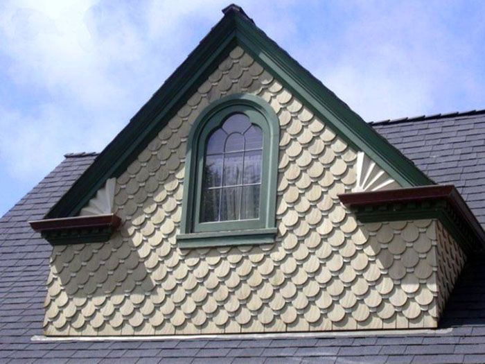 Използването на сайдинг в различни цветове и форми ви позволява да украсите този елемент от строителната конструкция.
