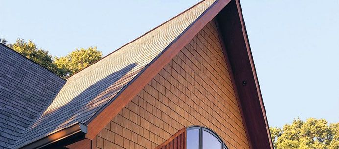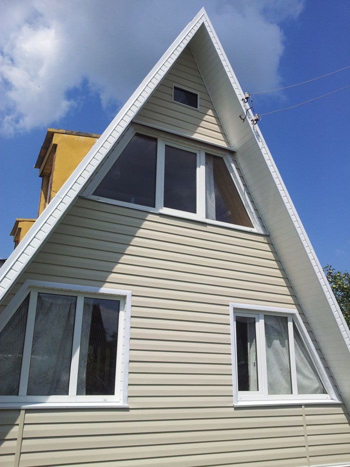 Една от опциите за използване на сайдинг е да се шият различни видове фронтони на сгради, направени с различни строителни материали.