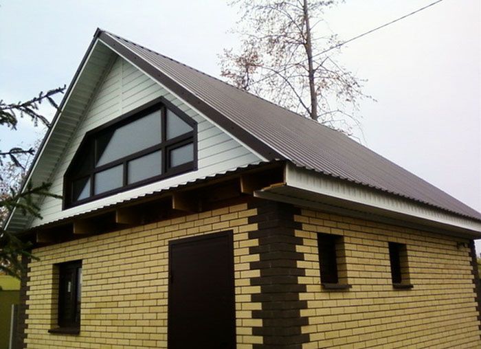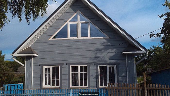 За да се облекчи теглото на сградата, при шиене на фронтона могат да се използват различни видове сайдинг или дървен материал.