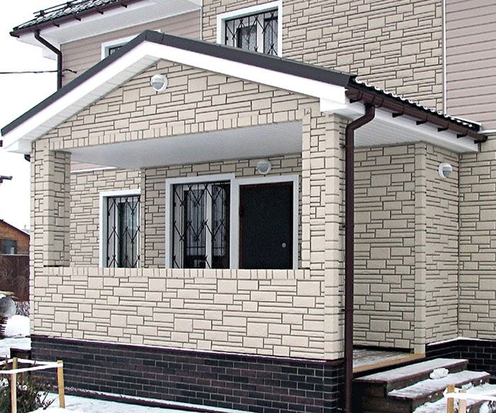 Декоративният камък може да бъде направен под формата на отделни плочки или декоративен панел, монтиран на подготвена основа. Закрепването на довършителния материал зависи от вида на ограждащите конструкции, използвани при изграждането на фронтона (рамка, тухла, бетон и др.).