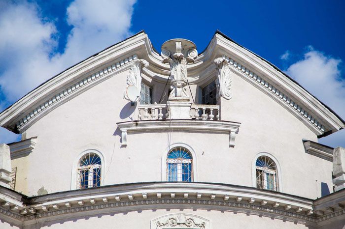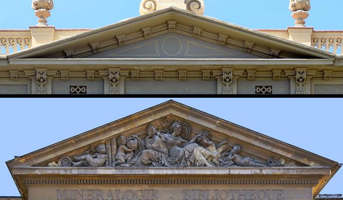 Забележка! Триъгълни фронтони са оформени върху сгради с двускатен покрив.