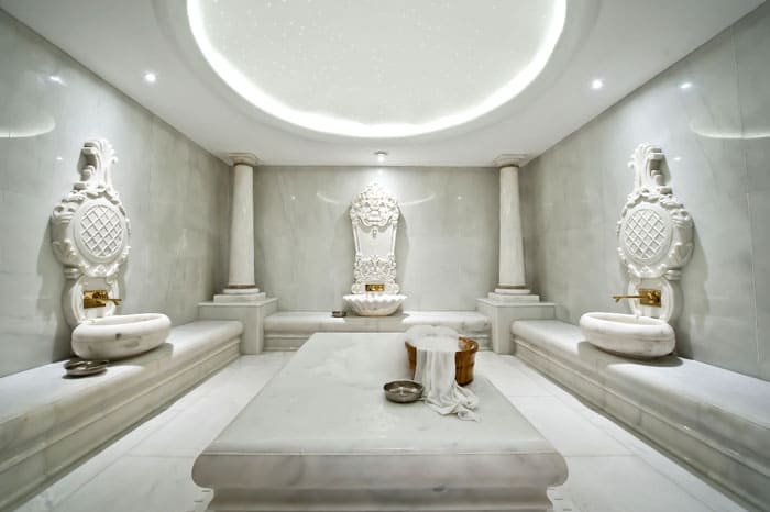 Интересно! Според древните догмати мраморът като материал за хамам при високи температури помага на тялото да се прочисти отвътре.