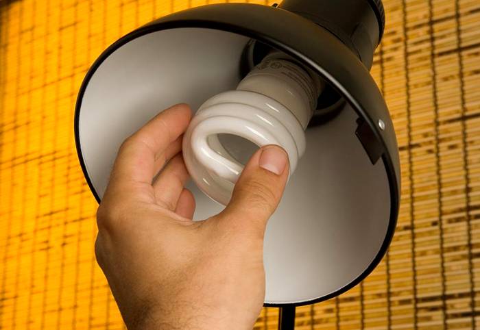 Die Energiesparlampe blinkt häufig, wenn das Licht ausgeschaltet ist. Dies geschieht, wenn der Schalter beleuchtet ist. Um das Problem zu beheben, müssen Sie die Hintergrundbeleuchtung entfernen. Haben Sie keine Angst, wegen des Quecksilbers fluoreszierende Lichtquellen zu verwenden. Sie enthalten etwa 2-4 mg davon. Zum Vergleich: In Quecksilberthermometern beträgt sein Gehalt 2 g.