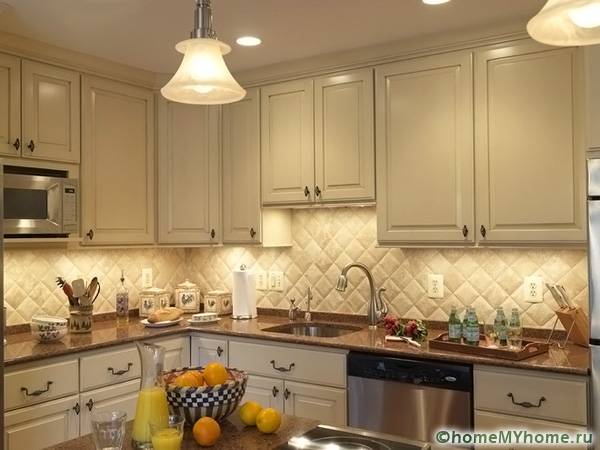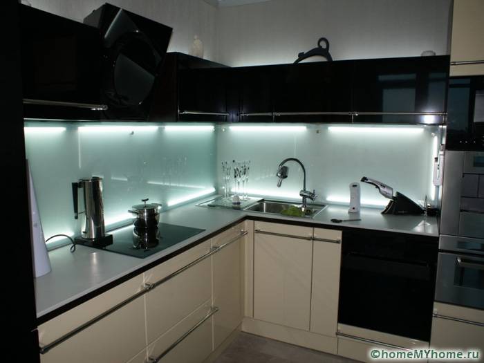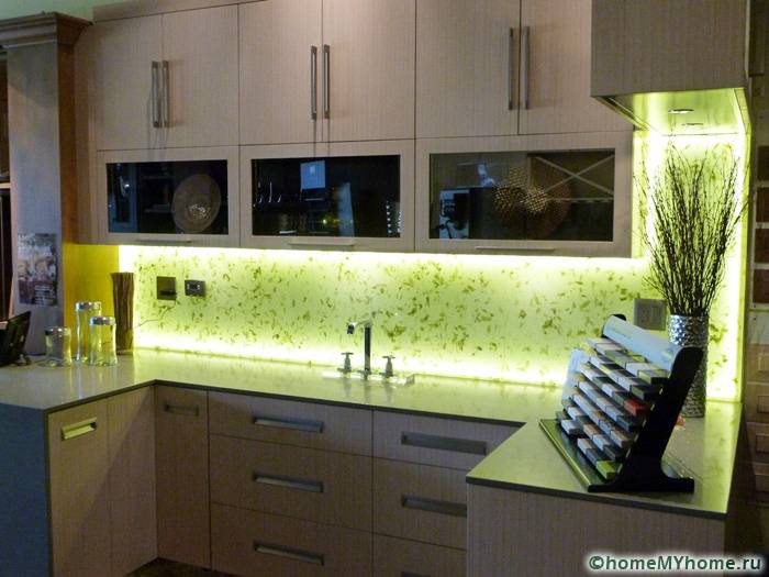 Eine nützliche Information! Die Verwendung von Skins als Lampe ist eine interessante und originelle Lösung, bei der LED-Streifen unter den Schränken installiert werden.