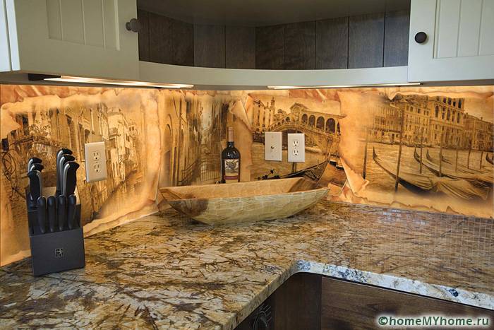 Trotz der Tatsache, dass der Hauptzweck der Verwendung solcher Paneele darin besteht, vor Öl- und Fettspritzern zu schützen, ist auch das darauf angewendete Bild wichtig. Ein gut ausgewähltes Bild kann Ihre Küche radikal verändern und sie viel komfortabler und attraktiver machen.