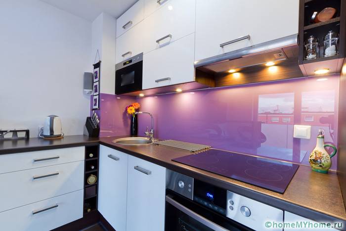 - Ein ziemlich schwerwiegender Nachteil ist auch die Tatsache, dass die Installation der Glasscheibe erst nach der Endmontage aller Küchenmöbel, der Installation von Steckdosen, Schaltern und anderen Funktionselementen durchgeführt werden kann.