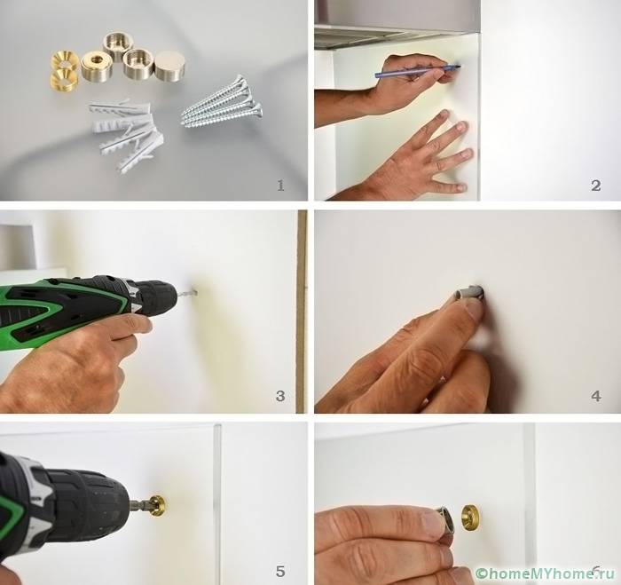 - Mit Schrauben. Diese Methode ist die einfachste und kostengünstigste und eignet sich außerdem für jede Oberfläche und jedes Material. Um die ästhetischen Eigenschaften zu verbessern, werden die Schrauben mit Stopfen versehen.