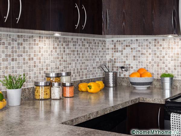 Schürzen für die Küche aus Keramikfliesen: Foto