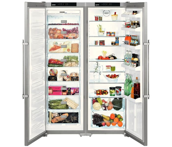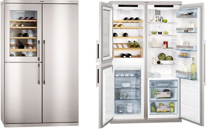 Das Side-by-Side-System wird aus einem bestimmten Grund immer beliebter: In solchen Einheiten befinden sich Gefrierschrank und Kühlschrank nebeneinander, was sehr bequem zu bedienen ist. Dies ist jedoch nur bei Großgeräten mit einem Volumen von über 400 Litern möglich.
