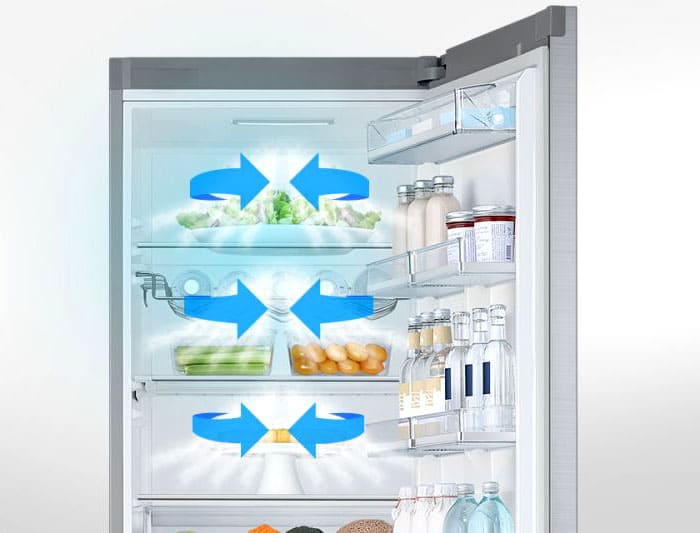 Das No Frost-System bedeutet kein Abtauen, sondern eine selbstreinigende Funktion. Tatsache ist, dass ein laufender Lüfter das Auftreten von Zonen mit unterschiedlichen Temperaturen nicht zulässt.