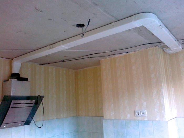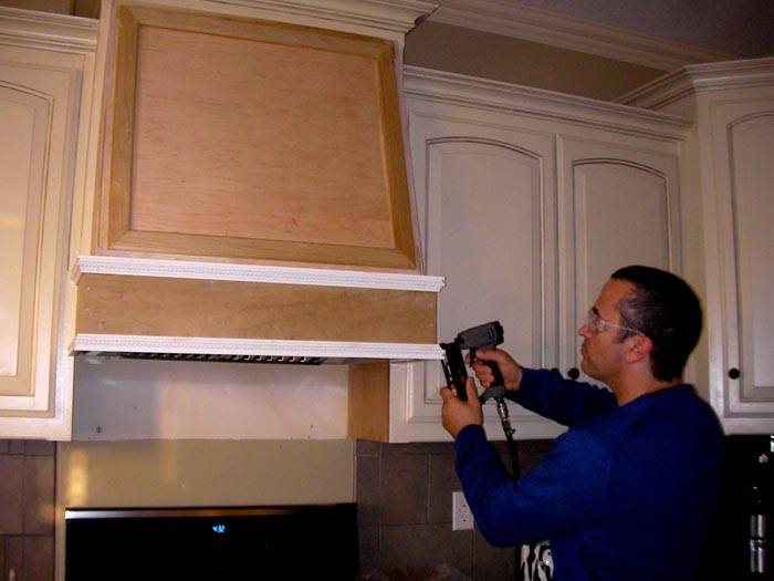 Wenn man das Foto der Haube für die Küche im Innenraum betrachtet, ist leicht zu erkennen, dass für die Herstellung die Hauptelemente des Produkts verwendet werden können: