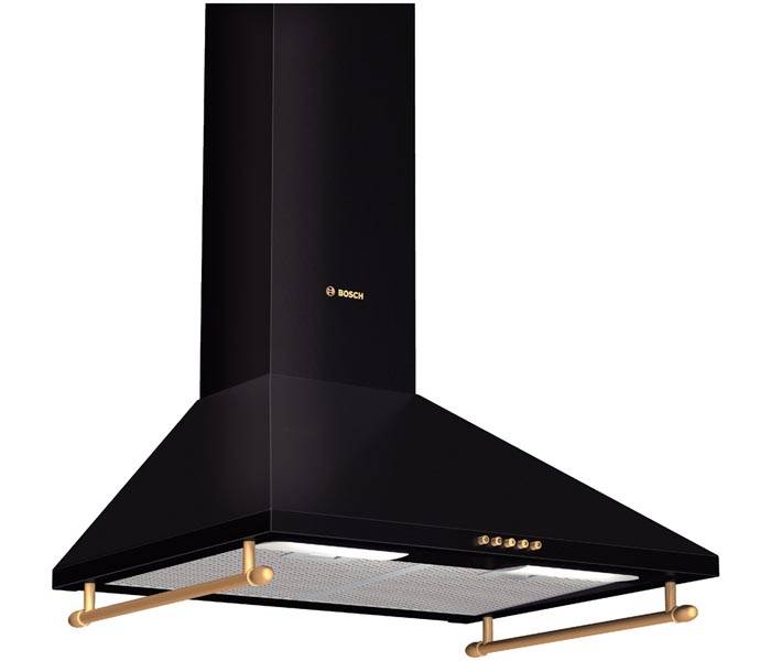 Ein weiteres Modell ist die Bosch DWK095G60R Motorhaube mit geneigtem Design. Seine Kapazität beträgt 580 Kubikmeter pro Stunde. Das Modell ist 89,6 cm breit. Dies ist die optimale Größe für Standard-Gasherde. Während des Betriebs kann ein Geräusch von 70 dB entstehen. Der Betrieb im Umwälz- und Entwässerungsmodus macht das Gerät für Wohnungen und Privathäuser relevant.