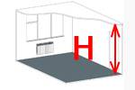 Die Höhe der Haube über dem Gasherd beträgt standardmäßig 0,75 m. Dies ist der Mindestwert, der auf den gewünschten Wert erhöht werden kann.