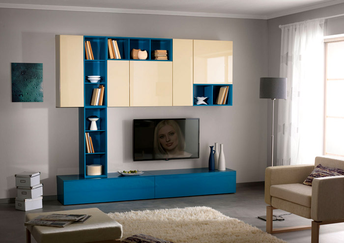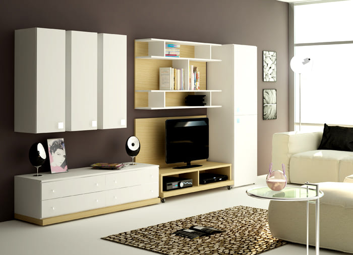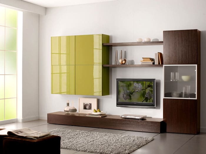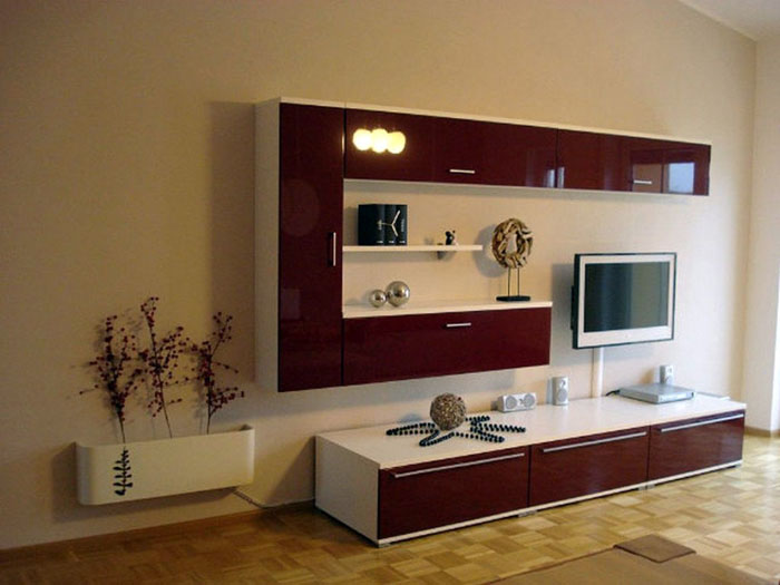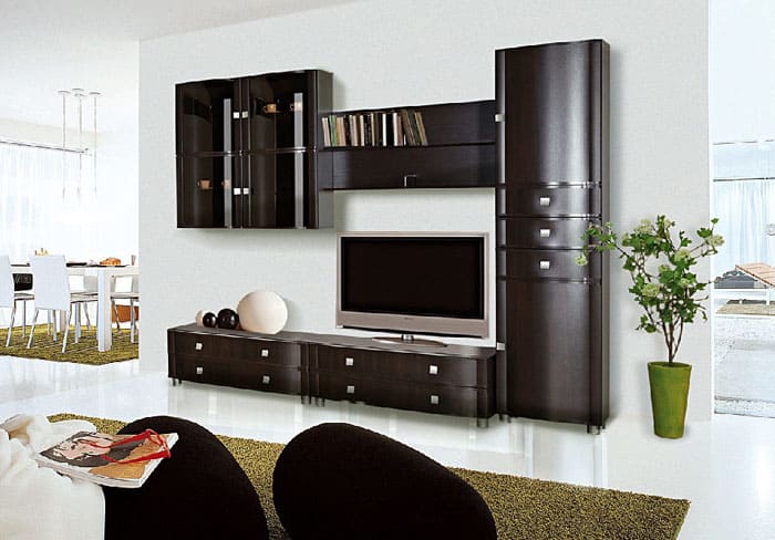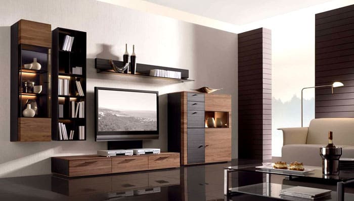 Unten finden Sie Fotobeispiele für erfolgreiche Wohnzimmerlayouts. Sie haben dank der Schrankmöbel einen wunderbaren Look bekommen.