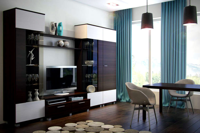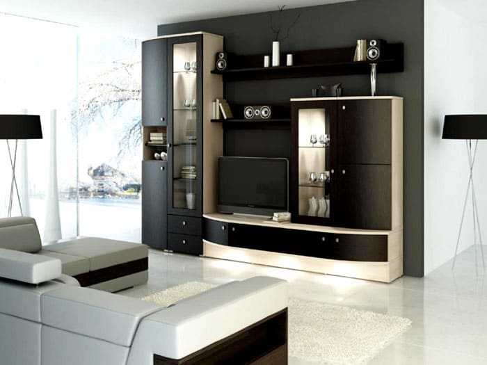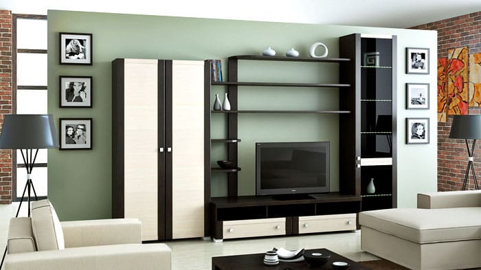 Eine Wand oder ein Kleiderschrank war in jedem Wohnzimmer ein Muss. Heute weichen viele von dieser Regel ab, aber es gibt viele Anhänger von Traditionen. Moderne Möbelstücke sind nicht sperrig, nehmen nicht viel Platz ein und ihr Aussehen verbessert nur das Erscheinungsbild des Raums und bringt funktionale Vorteile.