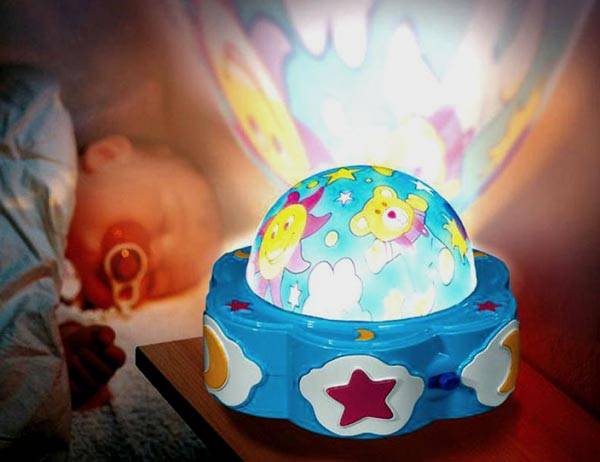 Nachtlichter in Form von Projektoren mit interessanter Beleuchtung sind eine traditionelle Lösung für Kinderzimmer. Im Gegensatz zu Glasfasermodellen können damit nicht nur abstrakte Highlights, sondern auch vollständige Plotkompositionen erstellt werden. Sehr beliebt sind "Star Turtles" - Nachttischlampen in Form eines Plüschtiers mit eingebauter Projektorlampe. Der Körper dieses Geräts besteht aus leichter und langlebiger Kohlefaser, die sich nicht erwärmt, keinen Geruch abgibt und nicht bricht.