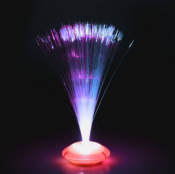 Mit Hilfe von Glasfasern entstehen Wasserfälle, Kaskaden und Feuerwerke. Das Licht wird in verschiedenen Winkeln reflektiert und trifft auf Wände, Decken und Vorhänge. Gleichzeitig sind die Strahlen so weich und schwach, dass sie die Augen überhaupt nicht reizen. Solche Geräte werden meist mit Batterien betrieben, da ihr Stromverbrauch gering ist.