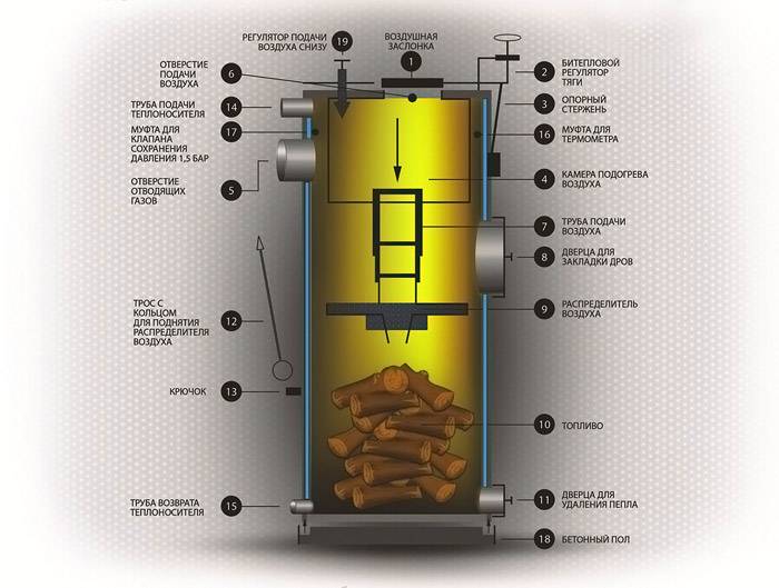 Es ist zu beachten, dass alle Konstruktionen dieses Typs das manuelle Nachfüllen von Brennholz erfordern. Sie automatisieren den Prozess, indem sie Mechanismen zur Zuführung von Paletten, Kohle und Torfbriketts installieren. Die aufgeführten Methoden werden jedoch auch für andere Arten von Heizgeräten verwendet.