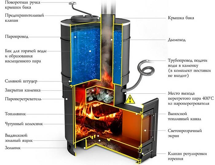 - Wärmetauscher sind in die Konstruktion von Holzheizöfen eingebaut. Sie werden an Standardsysteme mit Heizkörpern, Pumpe, Ausgleichsbehälter, Überwachungs- und Steuergeräten angeschlossen.