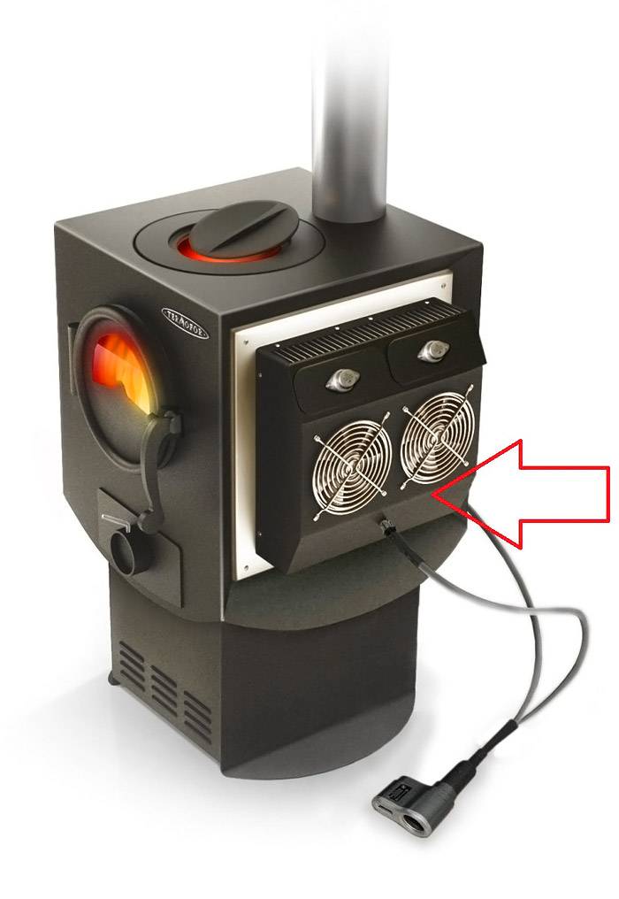 - Die beheizten Wände des Ofens werden zur Stromerzeugung genutzt. Die entsprechenden werkseitig hergestellten Generatoren arbeiten nach dem Prinzip des Auftretens einer EMF in einem Leiter, der mit zwei Peltier-Elementen verbunden ist. Die Leistung solcher Geräte der Haushaltsklasse erreicht 40-60 Watt.