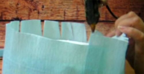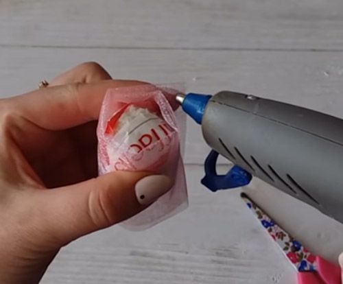 Bei Verwendung von Heißkleber als Läufer ist die Verwendung von Heißkleber problematisch: Eine dünne Folienverpackung hält hohen Temperaturen nicht stand. Anstelle von Kleber zum Befestigen ist es besser, Satinbänder zu verwenden.