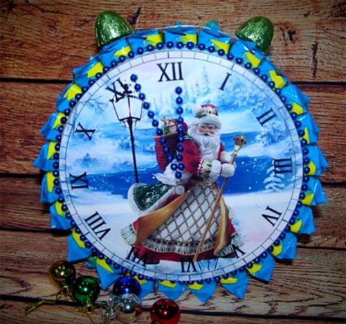 Ist es möglich, aus Süßigkeiten eine Uhr für das neue Jahr zu machen und auf welche Weise?