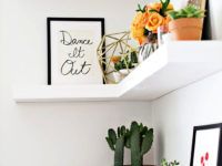 - Die Wand, an der die Regale aufgehängt werden, sollte dunkel und einfarbig sein. Somit sind die darauf platzierten Objekte deutlich sichtbar und stehen teilweise an der Wand hervor.