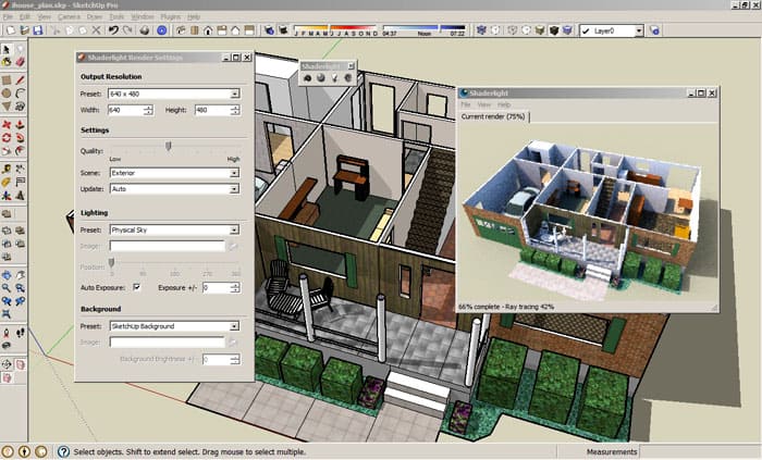 Sie können fast alles modellieren - das Innere des Hauses, Fassade oder planen. Die Anwendung kann mit Dateien anderer ähnlicher Produkte arbeiten, z. B. 3D Max oder Wavefront. Es ist auch eine Online-Version verfügbar, in der Sie direkt im Browserfenster entwerfen können.