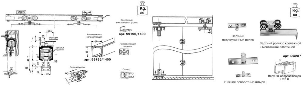 Die klassische Version mit Pendeltüren ist ohne ausführliche Erläuterungen verständlich. Rutschen Das Analogon hat mehrere Vorteile. In diesem Fall können nicht nur Platz gespart, sondern auch große Elemente verwendet werden. Besonders schwere Klingen werden von den unteren Führungen getragen.