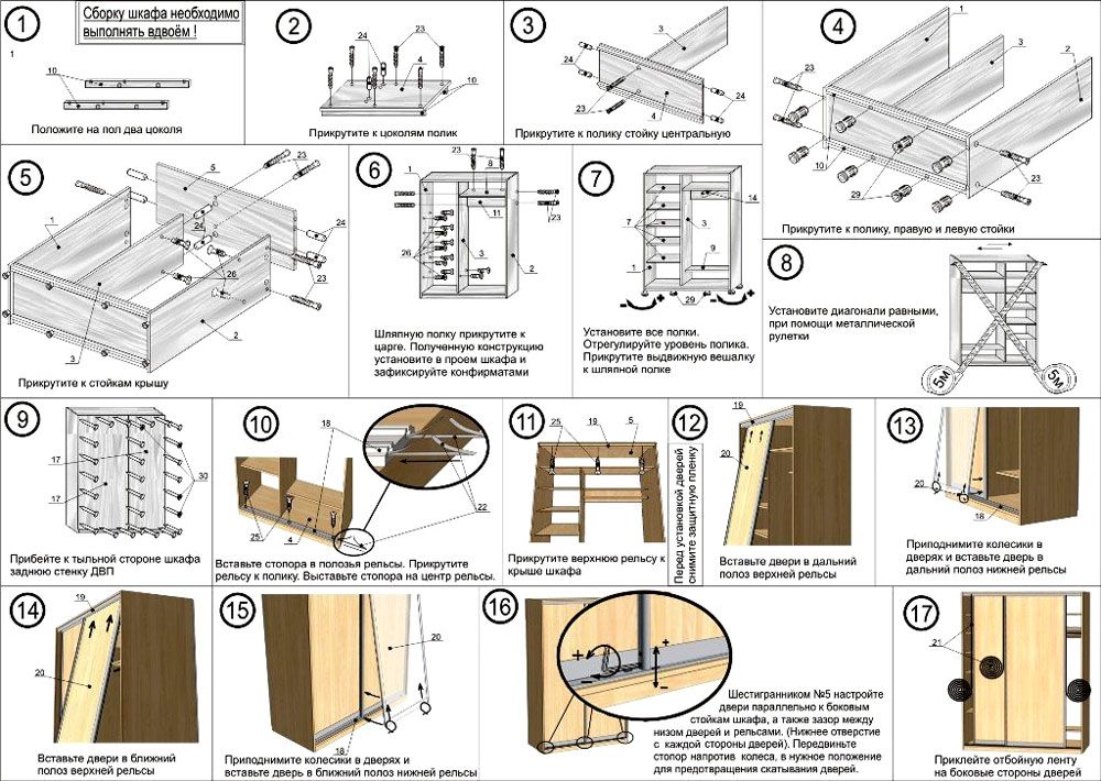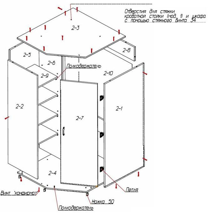 - 11 Video mit Anweisungen zum Zusammenbau eines Eckschranks im Schlafzimmer