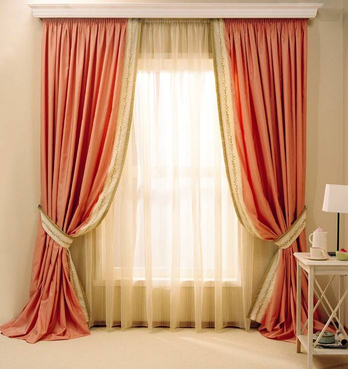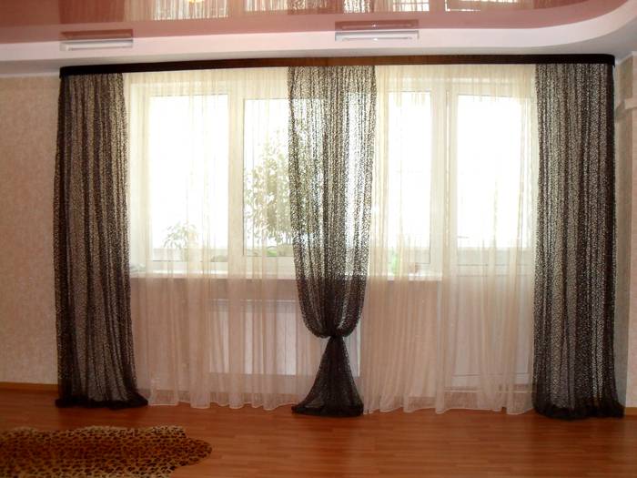 Eine nützliche Information! Sie können die Fensteröffnung mit drei Vorhängen dekorieren. In diesem Fall werden zwei wie gewohnt platziert und einer über das Gesims geworfen. In diesem Fall wird eine Dreifachhelix gebildet. Eine ausgezeichnete Lösung wären französische, österreichische oder römische Designs.