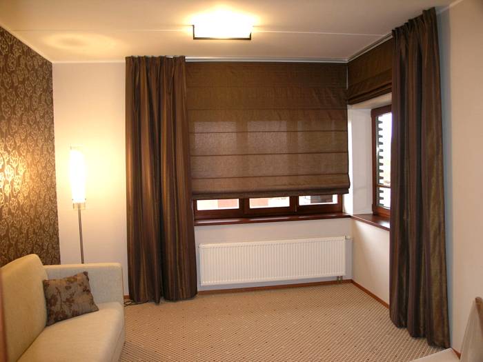 - Römische Modelle werden häufig in Kombination mit klassischen Modellen verwendet, da sie die Batterien nicht in der Länge abdecken. Es sind Streifen, die sich in gleichmäßige horizontale Falten falten. Für solche Strukturen wird ein starres Material verwendet;