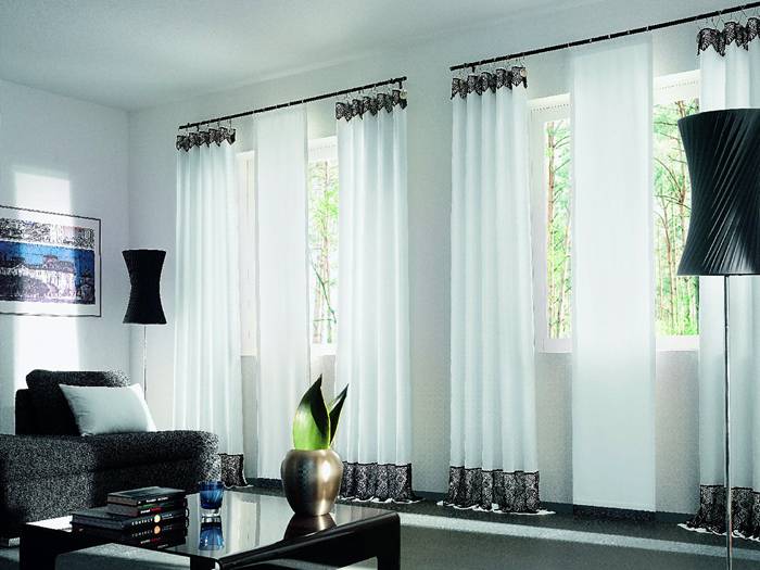 Alle Optionen können in Ihrem Wohnzimmer dekoriert werden. Das Farbschema, die Stoffstärke und die Textur sollten dem Stil des Innenraums, anderen Elementen von Textilien und Möbelpolstern entsprechen. Es liegt an Ihnen, welche Vorhänge Sie wählen. Eines ist wichtig - man muss sie mögen.