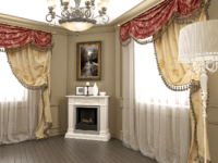 Foto von schönen Vorhängen und Vorhängen im Wohnzimmer im klassischen Stil