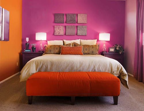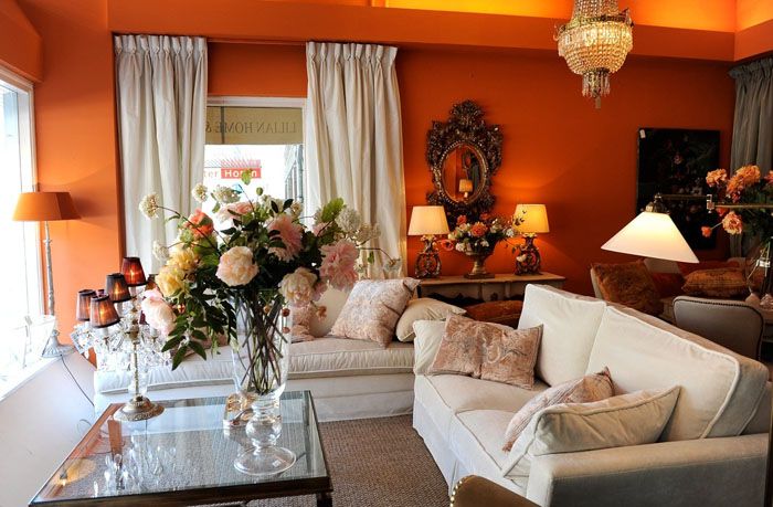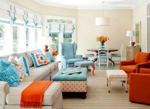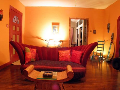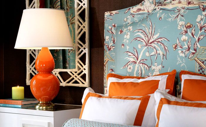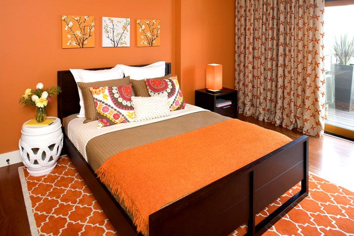 Verwenden Sie kleine, helle Gegenstände - Zierkissen, kleine Vasen oder Kerzenhalter, Bilderrahmen und orangefarbene Lampen