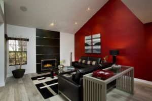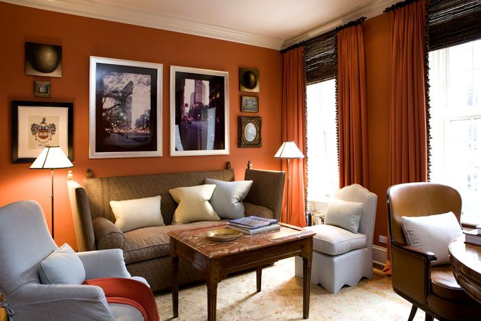 Backsteinrote Vorhänge können einen hellen Akzent in einem Raum setzen. Berücksichtigen Sie daher andere Farben, um den Innenraum nicht zu überlasten.