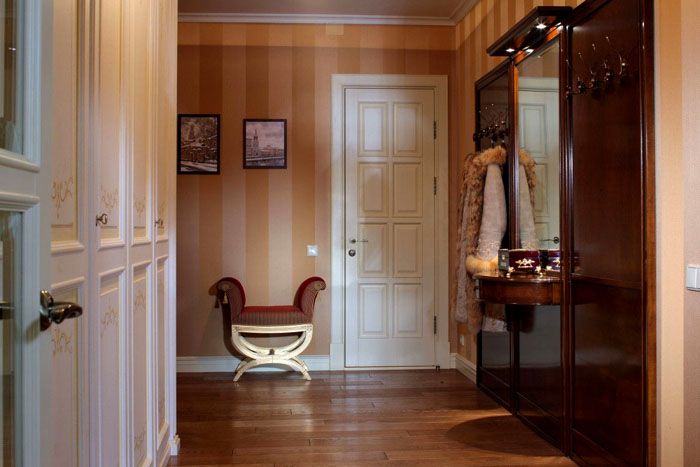 In den meisten Fällen Flur - ein kleiner Raum ohne Tageslicht. Aus diesem Grund in Wanddekoration Es ist besser, helle Farben zu verwenden und braune, praktischere oder milchig weiße Möbelsets hervorzuheben. Die Nachahmung von Holz in Terrakottatönen im Design des Gebäudes sieht interessant aus. In diesem Fall vervollständigen etwas kostbares Gold und kontrastierendes Braun das Bild. Vergiss nicht QualitätsbeleuchtungVerwenden Sie nicht nur Decken-, sondern auch Wand- und Stehlampen. Beispiele für die Verwendung von rotbraun Farben in den Fluren: